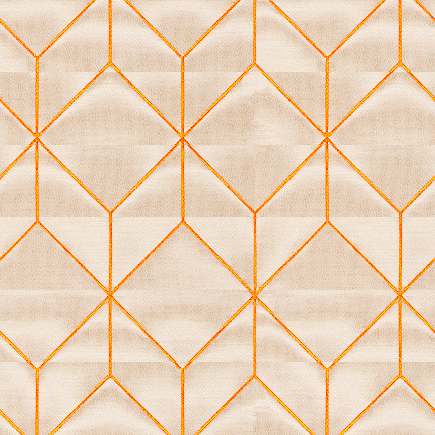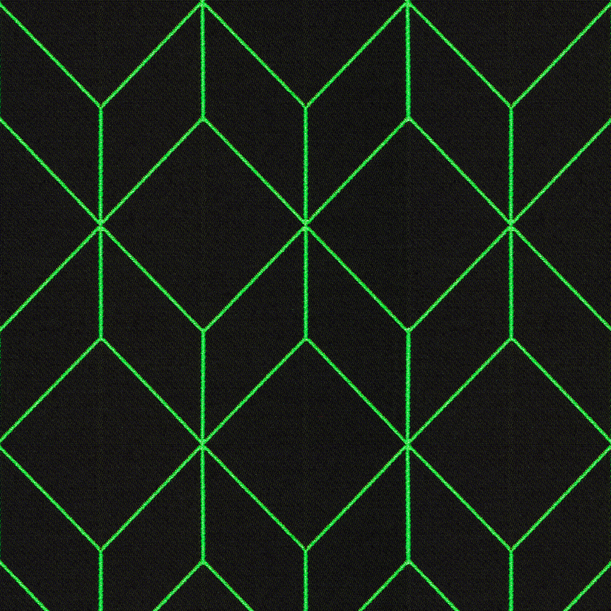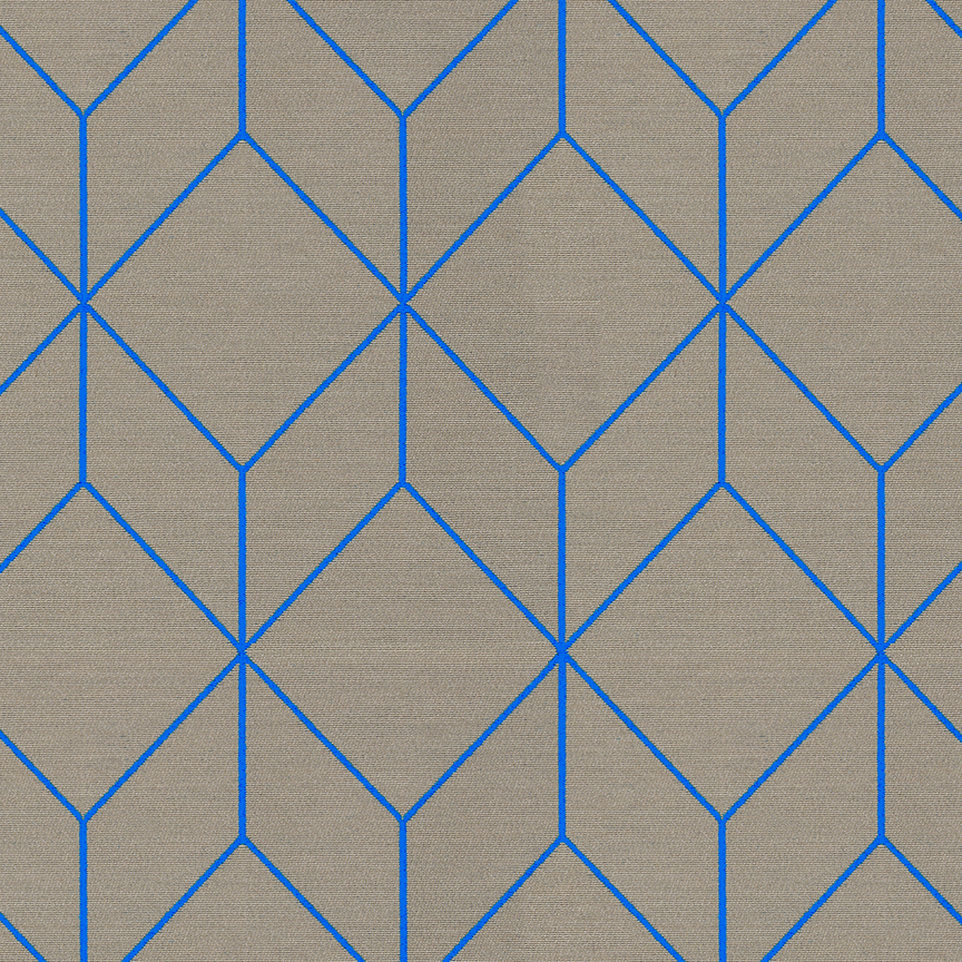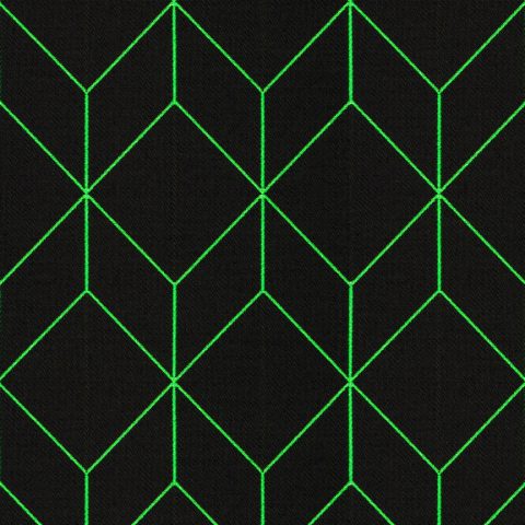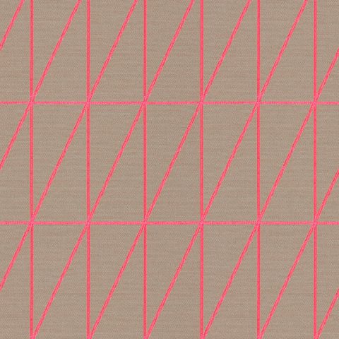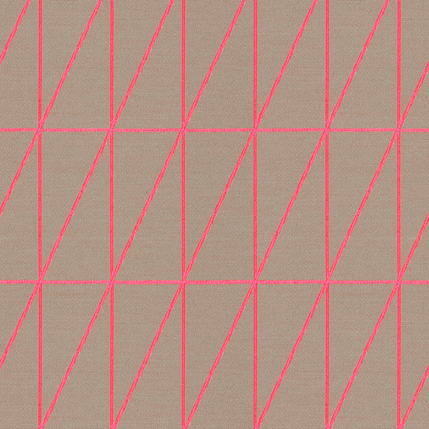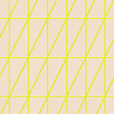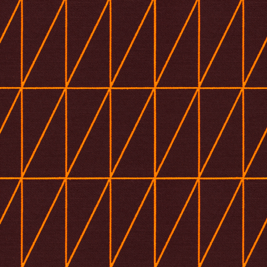 As with Blocks and Grid (2014), the essence of the Bright grouping lies in the inherent possibilities for combination and variation. With a unified palette of five colours apiece, the three textiles are designed to be used in tandem and to form new geometric relationships when combined. The patterns progress from a basic grid to a more complex formation: Bright Grid offers rigorous simplicity, Bright Angle cascades in an endless rhythm of obliquely bisected rectangles, and Bright Cube achieves layered depth through optical perspective. Rendered in a fluorescent spectrum of specially dyed nylon yarns developed with the Maharam Design Studio’s oversight, the patterns effectively map the three-dimensional forms to which they’re applied. The subtle textural contrast of lustrous nylon yarns against a matte cotton ground further enhances the sharp geometry and clear colour story.