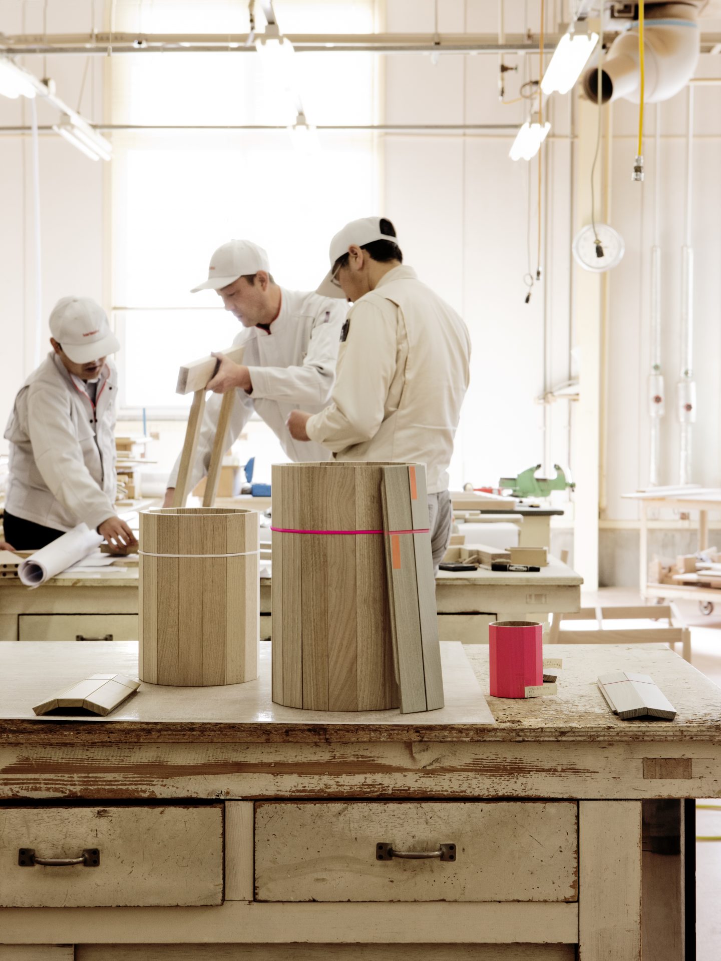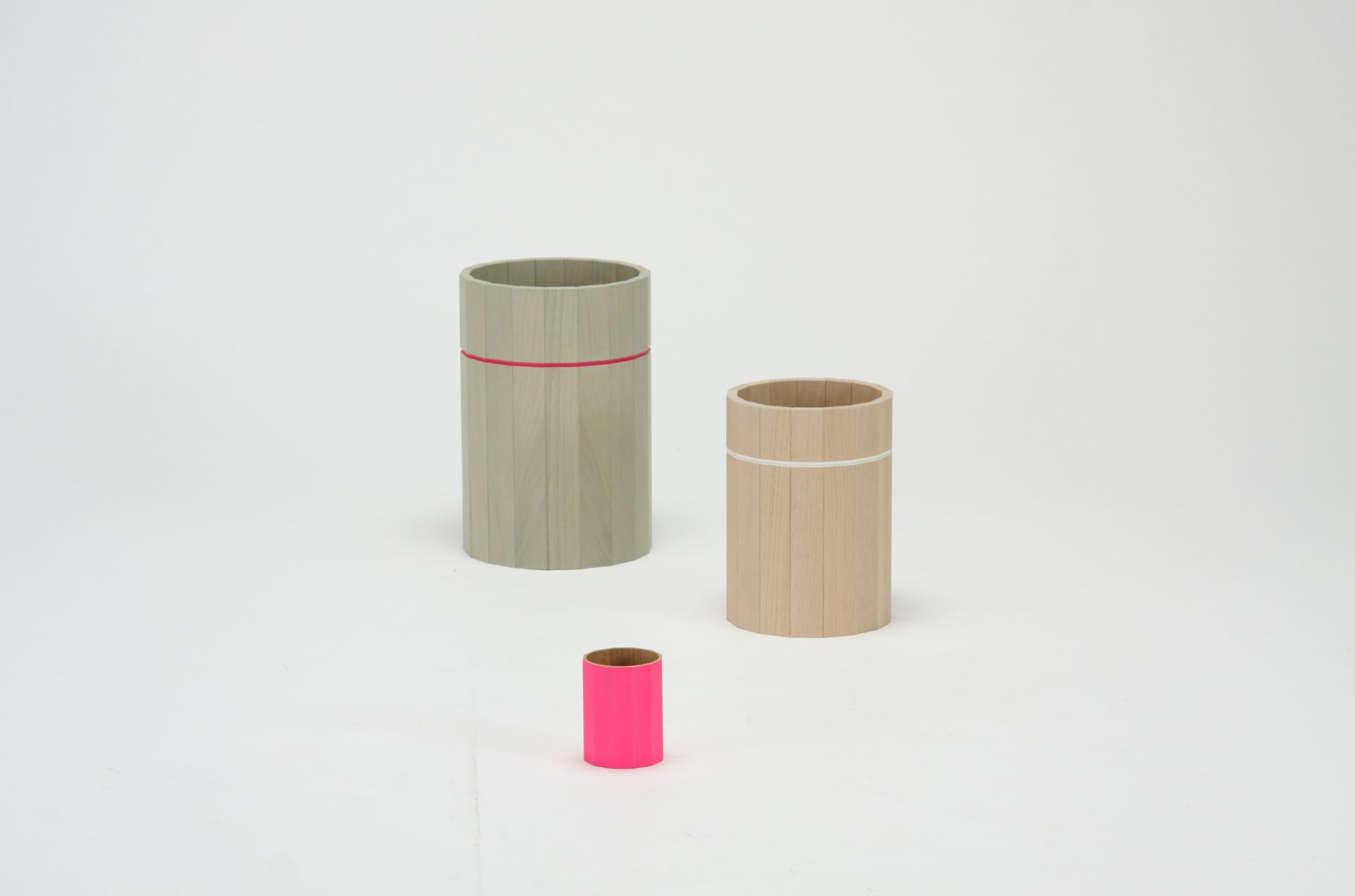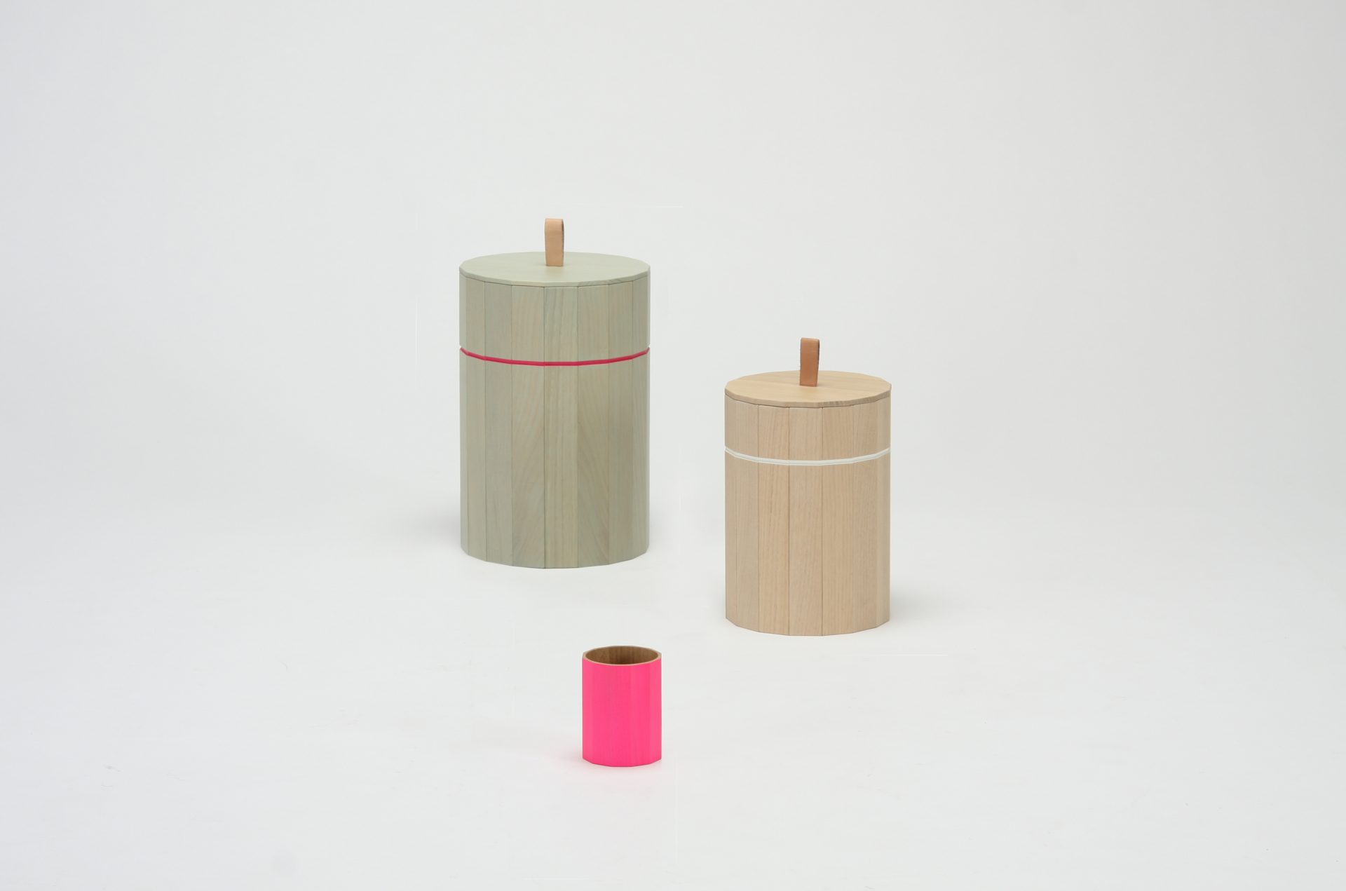 Colour Bin comprises a series of functional containers made of chestnut wood, available in three different sizes, that can be used in various places in the interior. All have their own colour palette, ranging from soft pastels to fluorescent pink, while a coloured ring constitutes an additional design detail. Colour Bin Small is attractive and convenient on top of a table for storing pens and other items. Colour Bin Medium can serve as a waste bin in smaller rooms, such as the bathroom or lavatory, or like Colour Bin Large, as a wastepaper basket under a table.