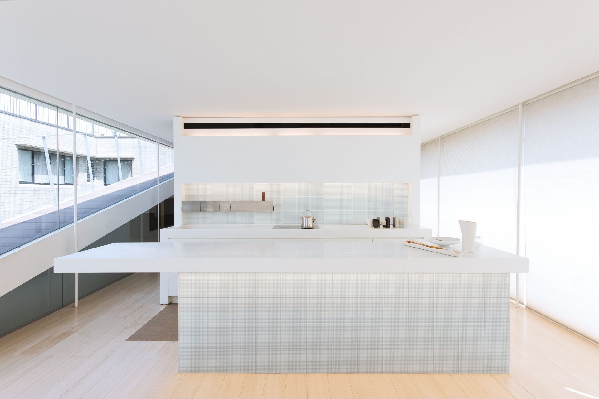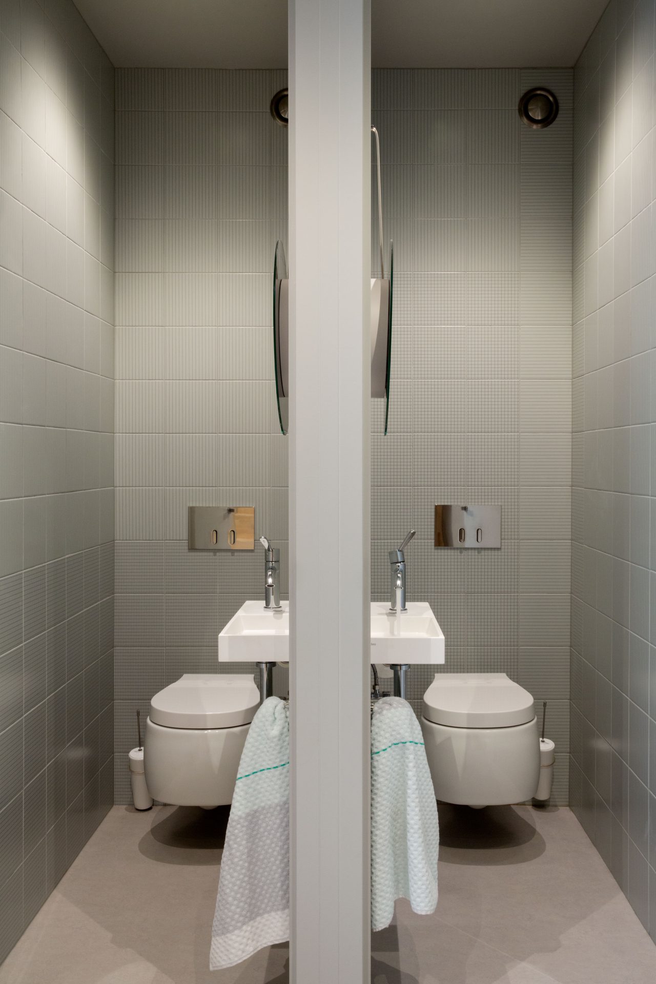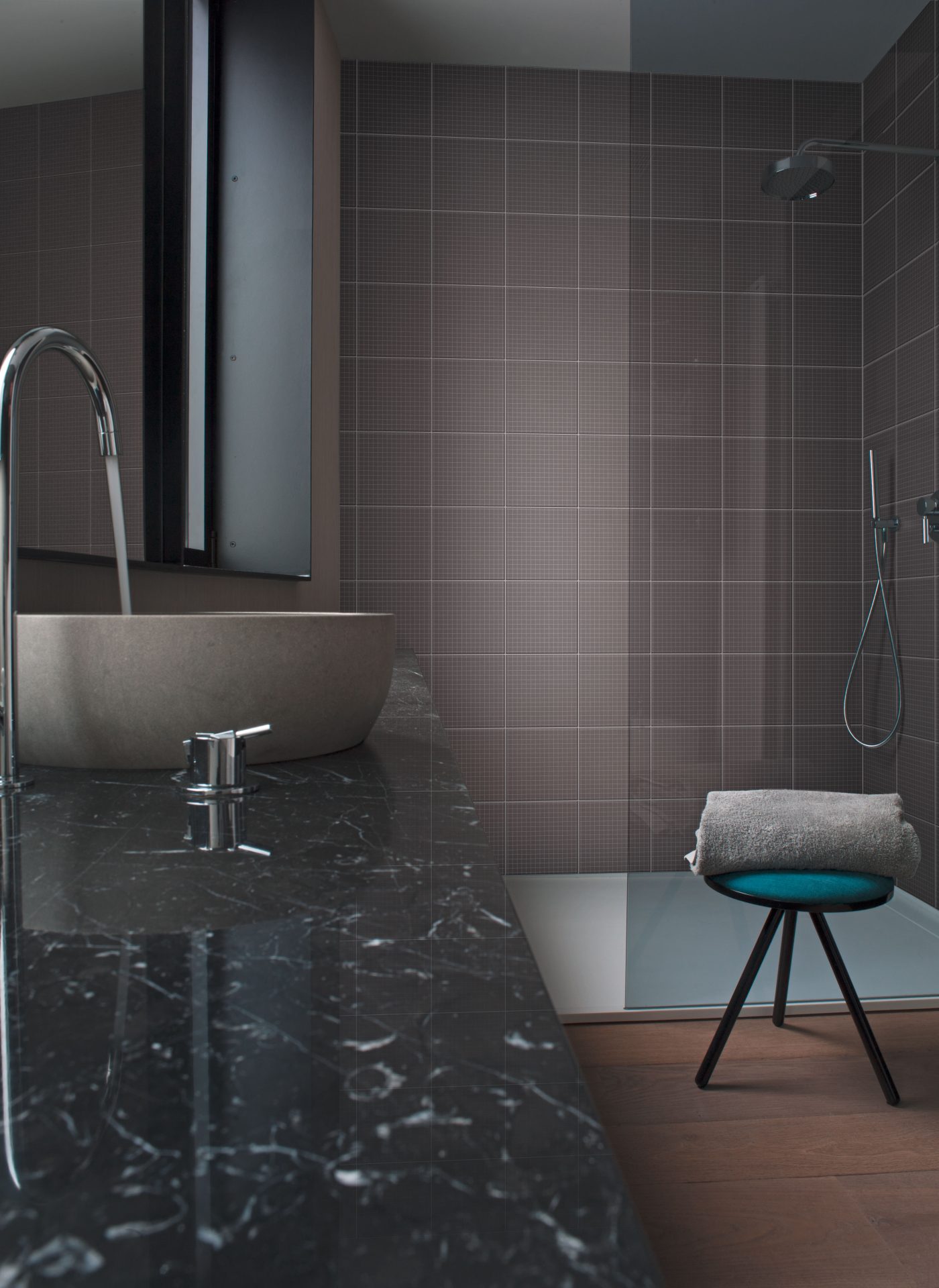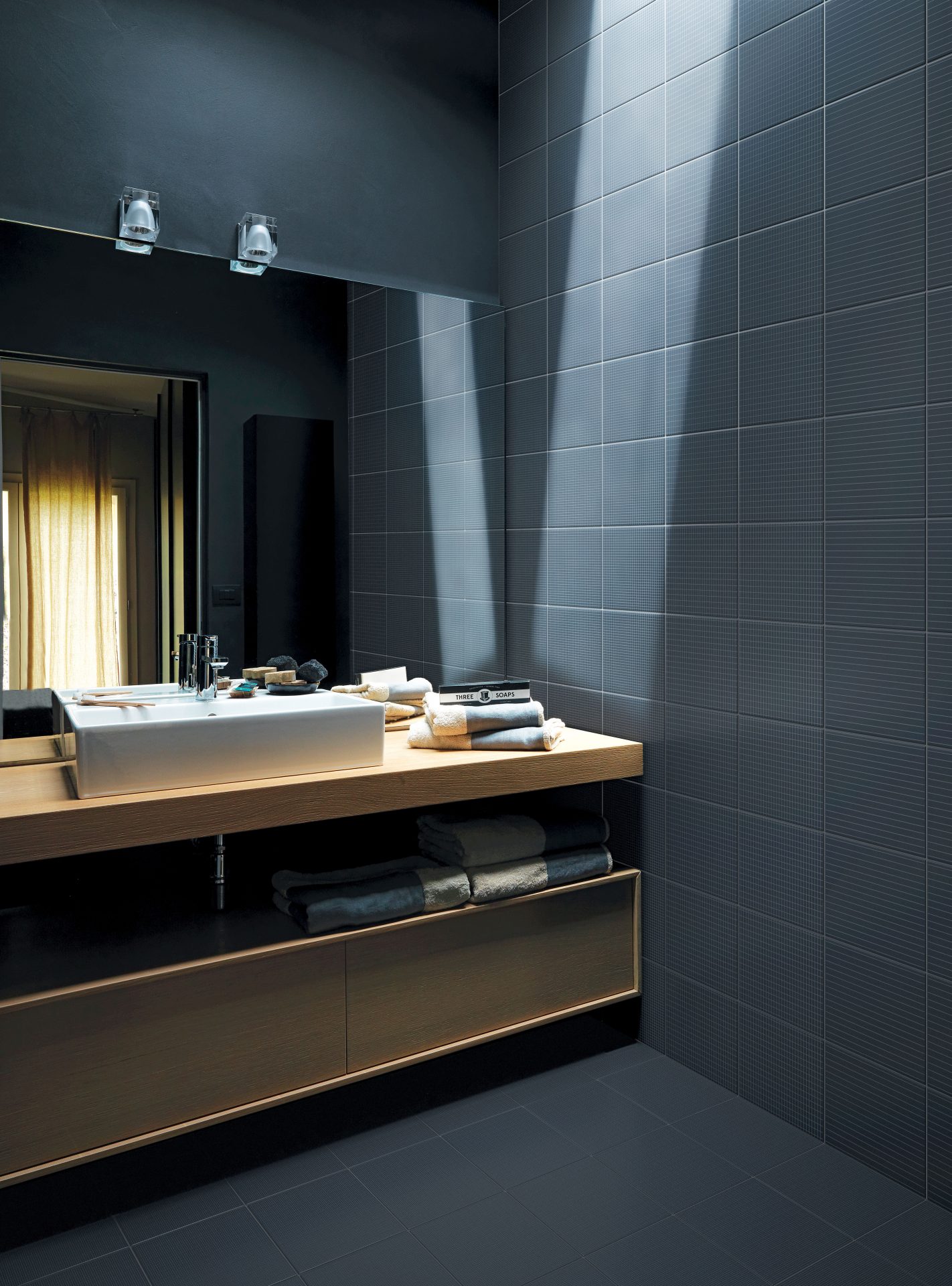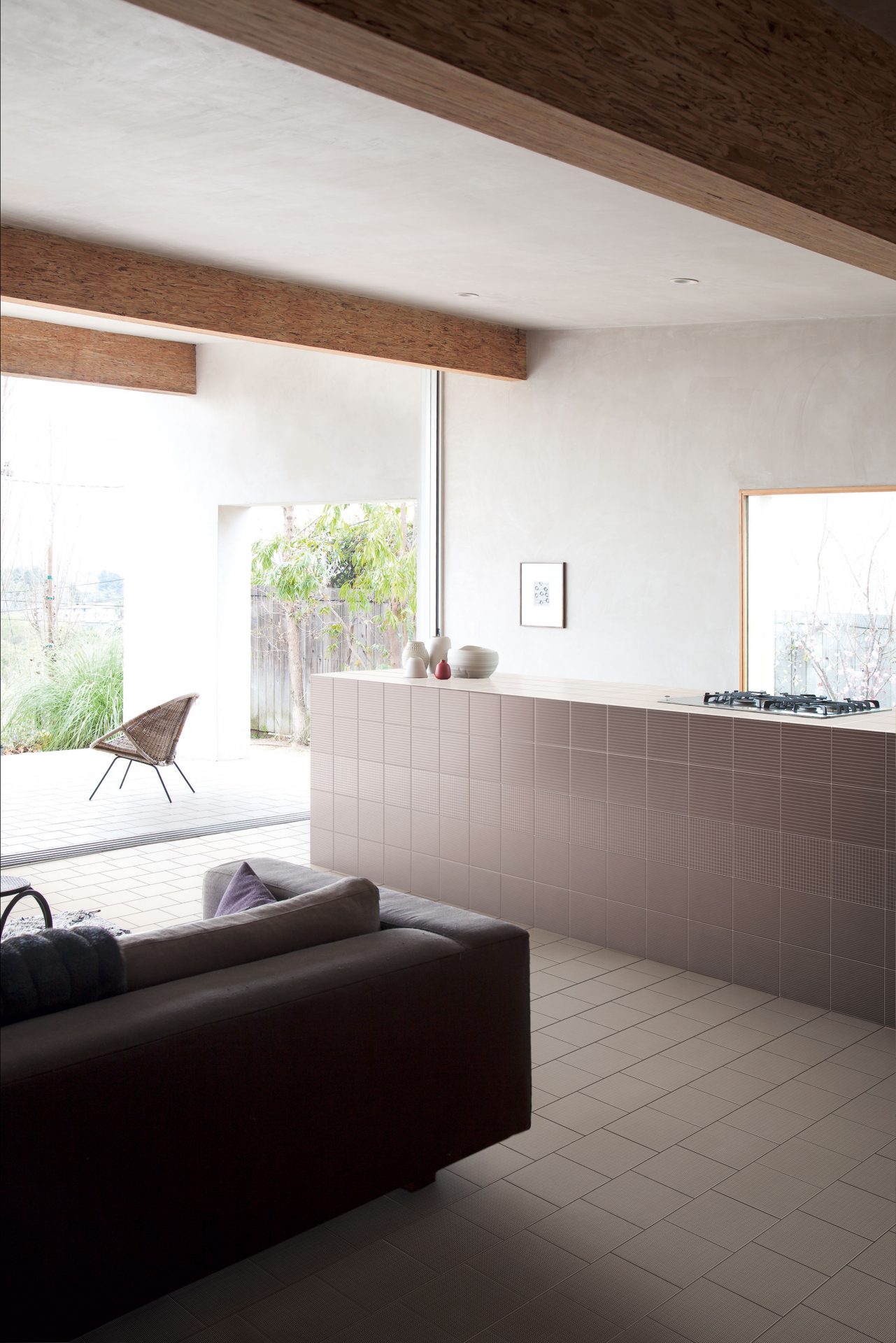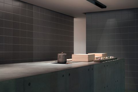 Collection of double-fired ceramic tiles with matt finish. A decorative, modular graphical system made up of five decorations that can be combined both vertically and horizontally. Screen printed and available in eight colours in the 20×20 cm format with thickness of 8 mm. The collection is completed with a range of solid colours for floors produced from glazed white stoneware that perfectly match the decorations, with matt textured finish and thickness of 7 mm.