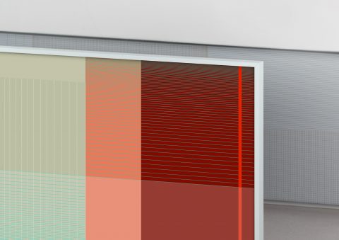 The ‘Warm Extraordinary’ artwork features a rich combination of line patterns and colour fields that create a layered and refined colour composition. The density of the grid determines how one experiences colour and gives the colour an airy appearance.