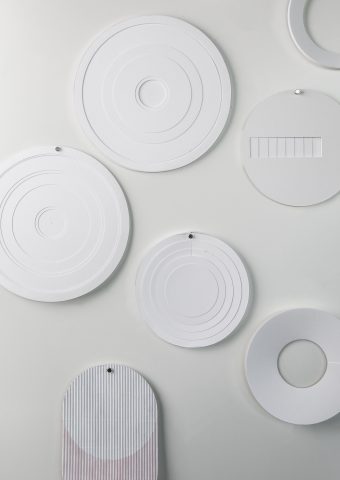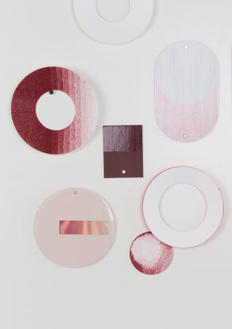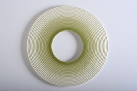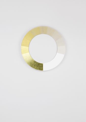 Tondi (small circular paintings) are inspired by round, age-old plates with vividly coloured borders. Scholten & Baijings’ tondi are abstract translations of landscapes. Displayed on the wall, they offer colourful vistas and panoramic views. Colour studies made by glaze experts during their stay at the porcelain factory also served as their inspiration. The colour variations on the different porcelain designs and the resulting colours in either a matt or lustrous glaze are both stunning and vast, from which many striking choices have been made.