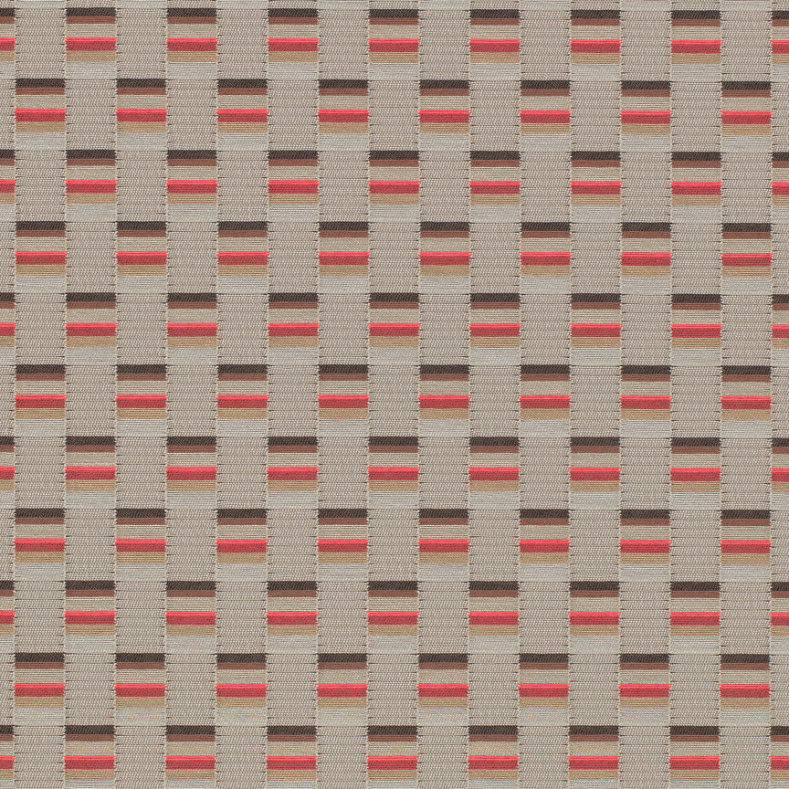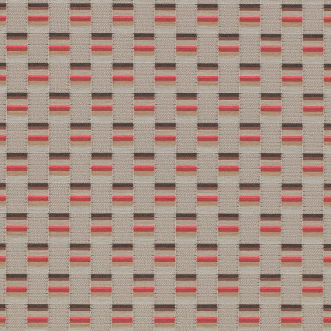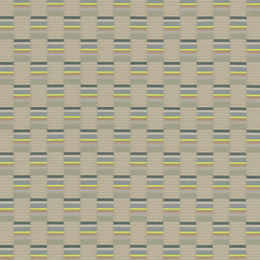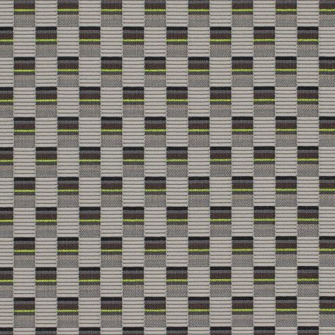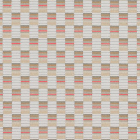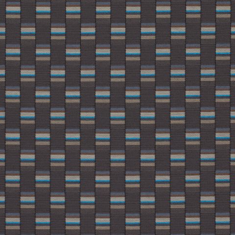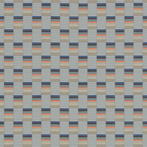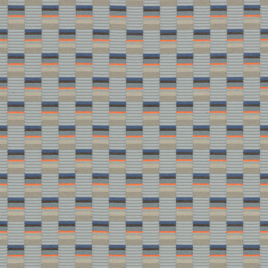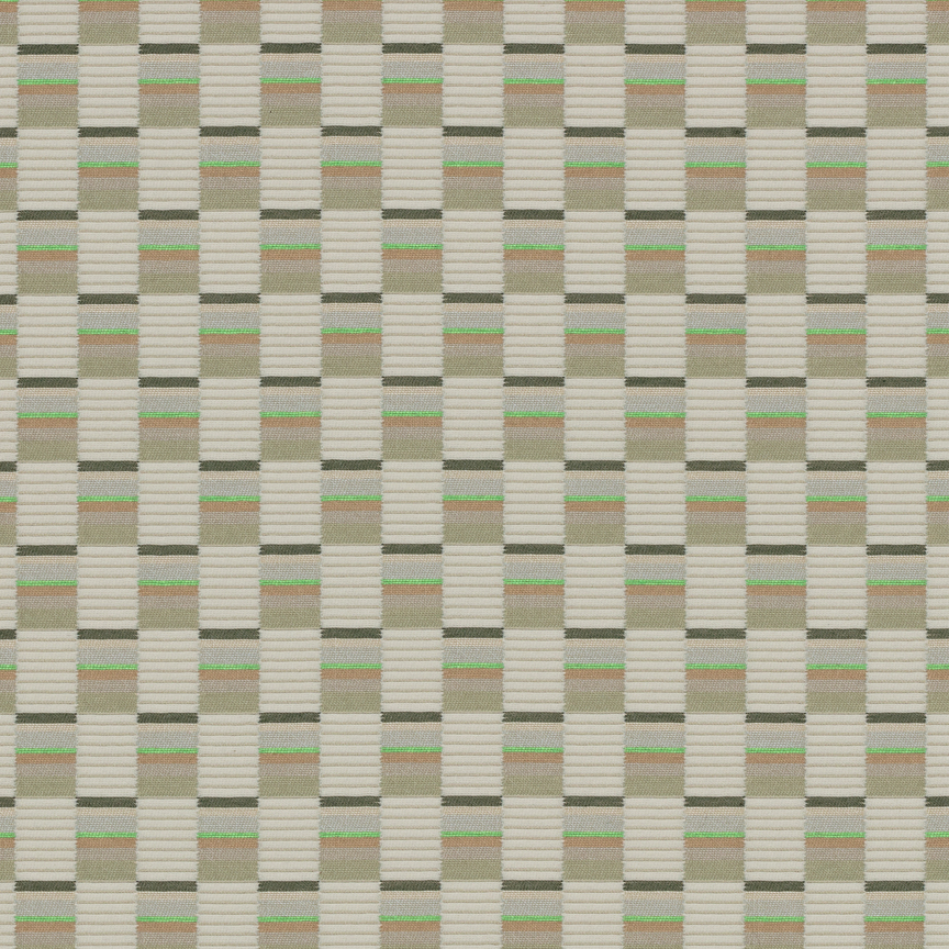 The concept for Mesh derives from Scholten & Baijings’s Strap Chair (2014), which reinterprets 17th-century Dutch cane or woven chairs. Specially developed braided polyester straps are wound around the chair’s tubular frame in a striped, light-to-dark arrangement, producing harmonious combinations of hues. Likewise, Mesh’s animated surface features a modified checkerboard pattern wherein rectangles of ribbed texture alternate with smooth stacks of compact colour punctuated by crisp fluorescent stripes. These critical colour accents are evident in the earliest prototypes, in which a checked pattern was anchored to a foam backing by vivid stitches. In addition to these samples, Scholten & Baijings’s studio produced yarn windings as studies for the juxtaposition of solid and composed colour.
