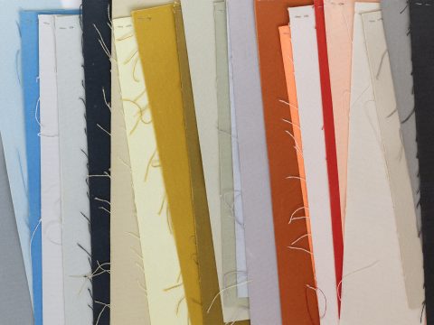 Pare, on the other hand, is exceptional as the first solid textile that Maharam created with a collaborator. Again employing their ‘Atelier-way-of-working,’ Scholten & Baijings developed a unique and original palette by hand-painting strips of canvas, which the textile was then dyed to match. Subtle chromatic variation, first seen in Blocks, is observable in Pare’s faintly gridded, pointillist surface, resulting from a dyeing process that employs differing absorption properties of various fibers. With a smooth but dry hand, Pare is a vehicle for neutral and brilliant shades. Its palette of seventeen matte colours includes a range of warm and cool grays, pinks and plum, light and dark denim, coral, lemon, and jade.