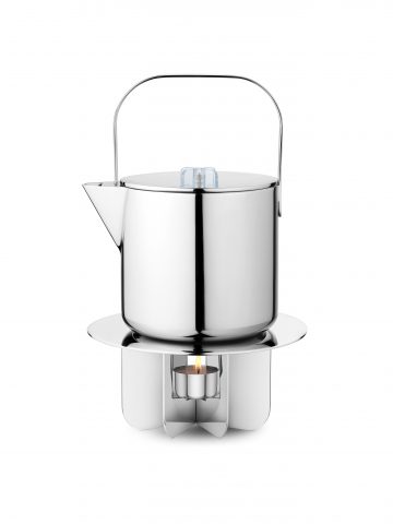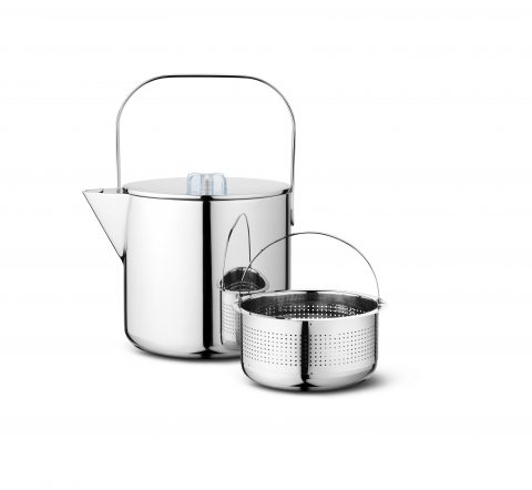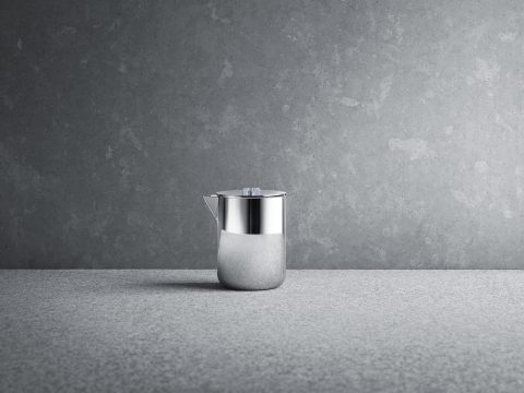 At the invitation of Georg Jensen, Scholten & Baijings designed a tea & cake collection entitled Tea with Georg. The title is a nod to the company’s danish founder, Georg Jensen. The collection consists of a stainless steel teapot, tea warmer, porcelain cup and saucer, stainless steel espresso cup and saucer, creamer, sugar bowl, cake stand, cake platter and individual porcelain dessert plates. The design for this everyday tableware is based on a study conducted into the Japanese tea ceremony, freely interpreted for western use by Scholten & Baijings. starting point for the design process is the symbolic value the Japanese attach to the tea ceremony, as well as their love of aesthetics, the appreciation of traditional handicraft and the beauty of the material in general. The teapot with tea sieve and warmer, executed in stainless steel, form the basis of this collection. The design reflects all the qualities of the Georg Jensen brand: the skilful metalwork, the high degree of precision and the meticulous surface finish.